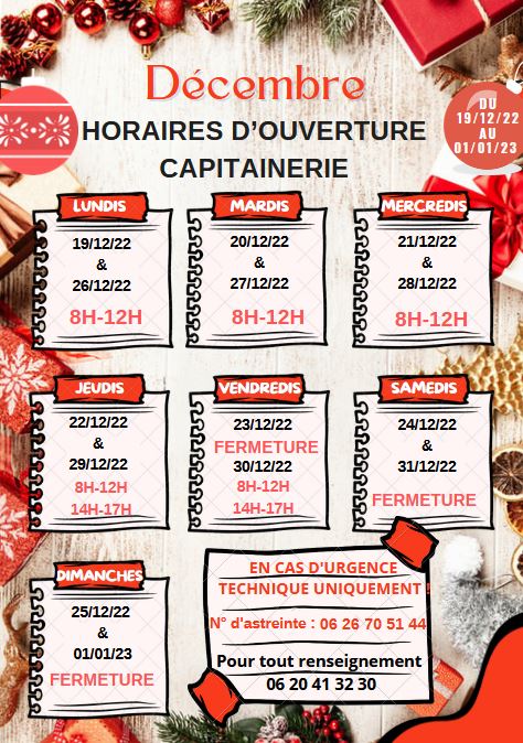 A l’approche des fêtes de fin d’année, nous vous informons d’un changement temporaire de nos heures d’ouverture du 19/12/2022 au 01/01/2023. Nous vous rappelons que pendant cette période, il y a les Festivités de Noël : marché de Noël, cinéma, animations de rues, dégustation des Treize desserts, feu d’artifice, de belles animations pour patienter avant l’arrivée du Père Noël ! Venez vivre les fêtes dans notre charmant bourg.