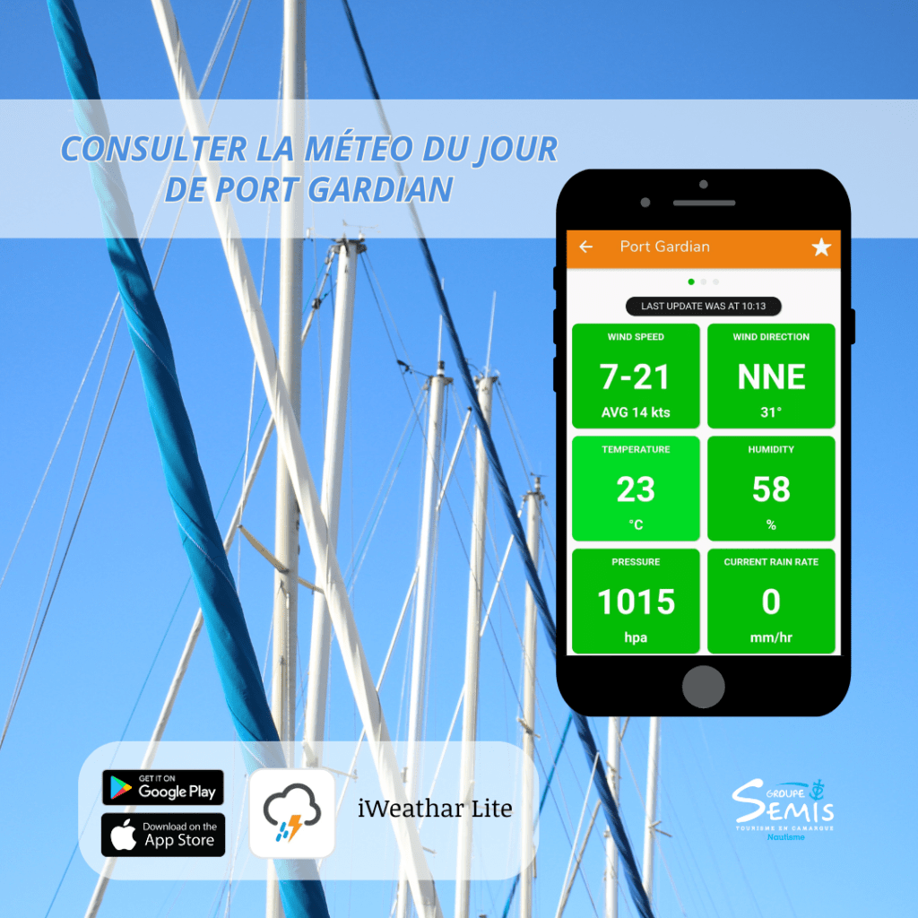 Nous espérons que cette nouveauté répondra à vos attentes et vous permettra de profiter pleinement de votre navire. La météo reste accessible aussi directement depuis le menu de notre site internet. Et nous diffuserons toujours le bulletin météo marine sur notre page facebook et à la capitainerie.