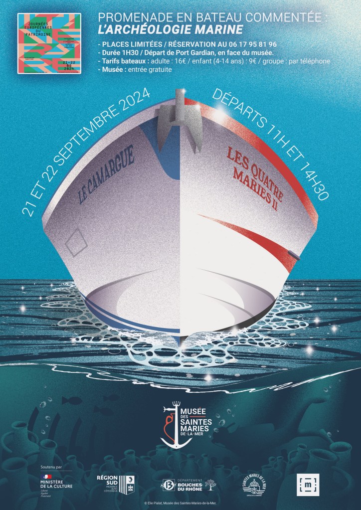 Pour en savoir plus sur les secrets de l’archéologie sous-marine, Port Gardian vous conseille vivement de visiter le musée des Saintes Maries de la Mer et de participer aux sorties en mer commentées les 21 et 22 septembre. Plus d’infos auprès du musée au +33 4 65 07 66 26.